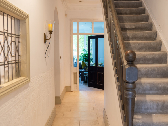 The original staircase is directly ahead, which goes up three floors and down to the wine cellar.