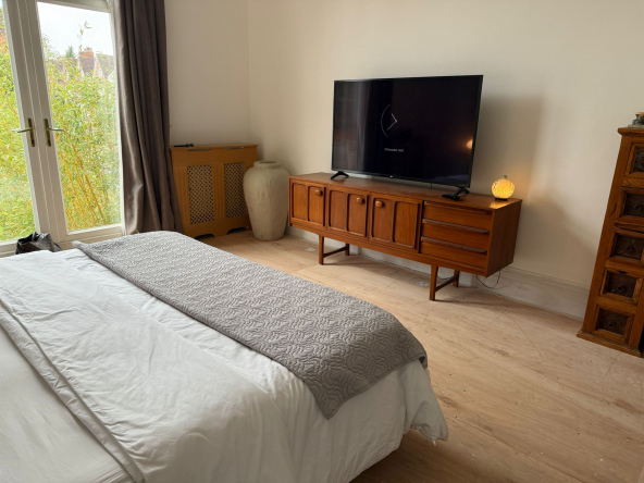 Large double room, ensuite with bath & shower and 2 windows, built in wardrobe and patio doors out to a balcony (not in use at present)