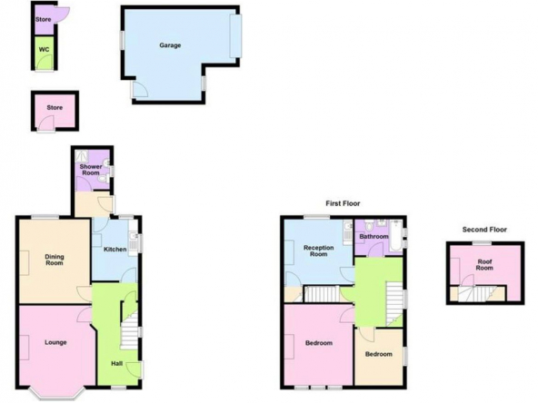 Externally, the property benefits from gardens to the front, side, and rear, providing ample outdoor space for relaxation or landscaping. A detached garage to the rear offers valuable off-road parking or additional storage.