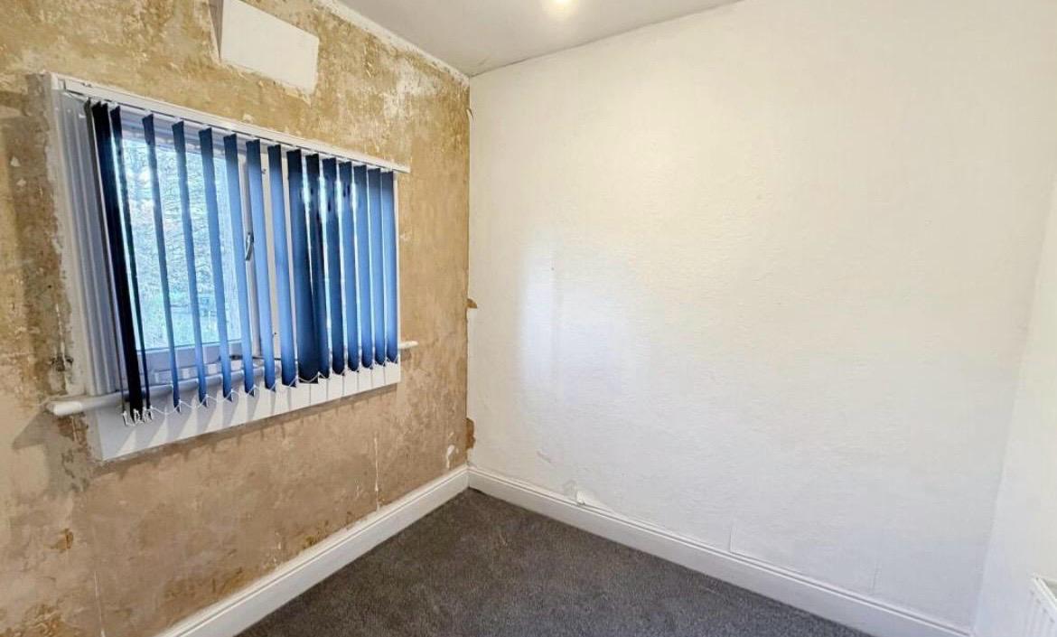 The kitchen provides a practical layout and presents an exciting opportunity for modernisation to suit individual tastes. A rear lobby leads to a convenient ground floor shower room, adding to the home’s functionality.