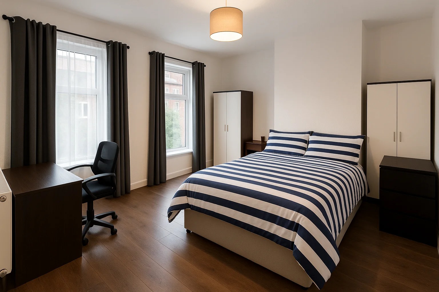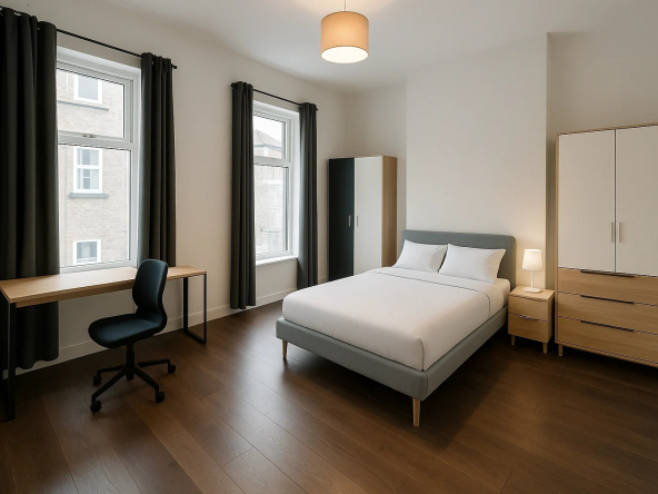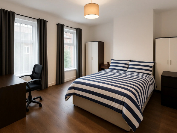 • 5 Bedrooms: Each room features an en-suite bathroom and comes fully furnished.