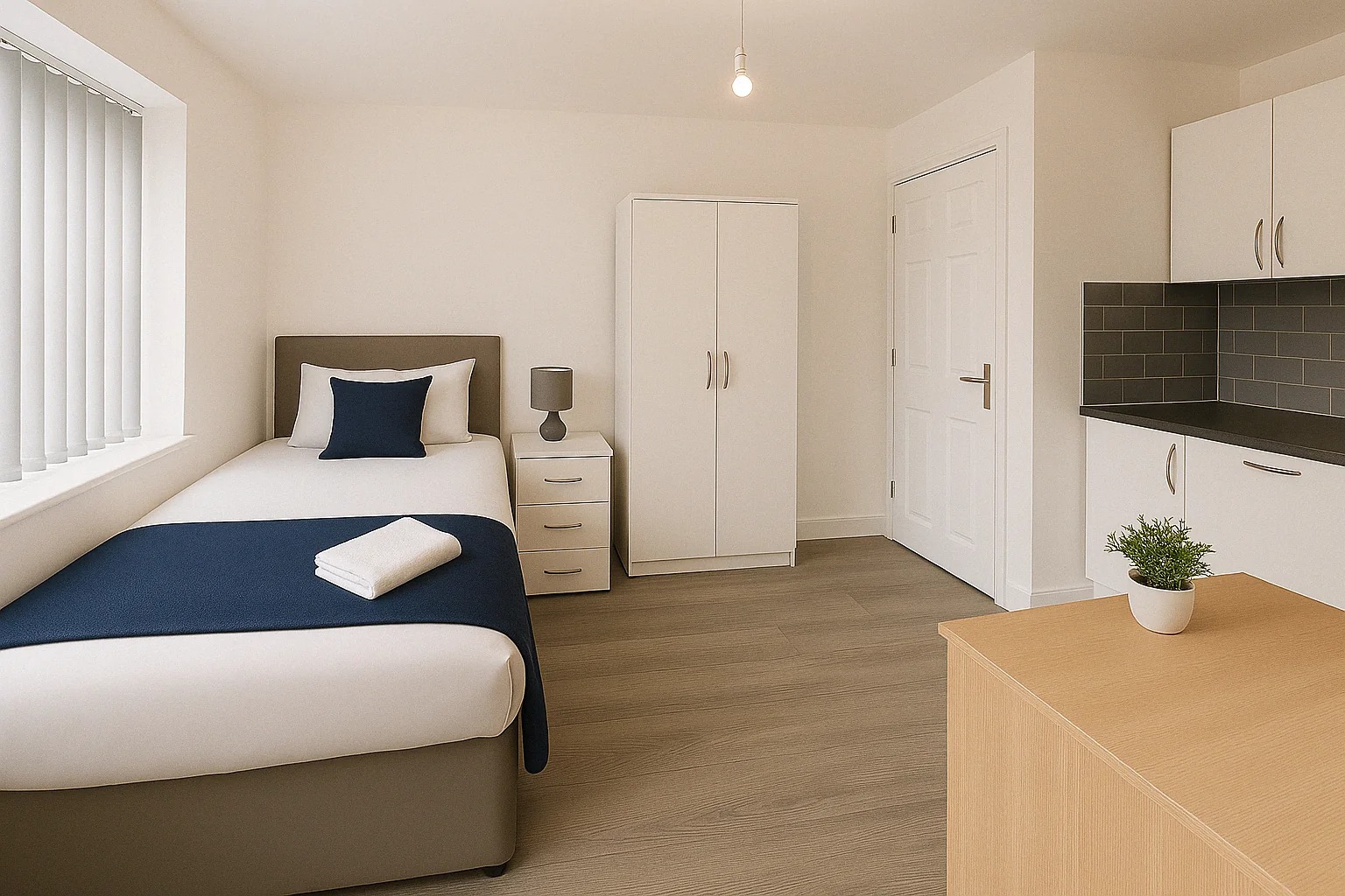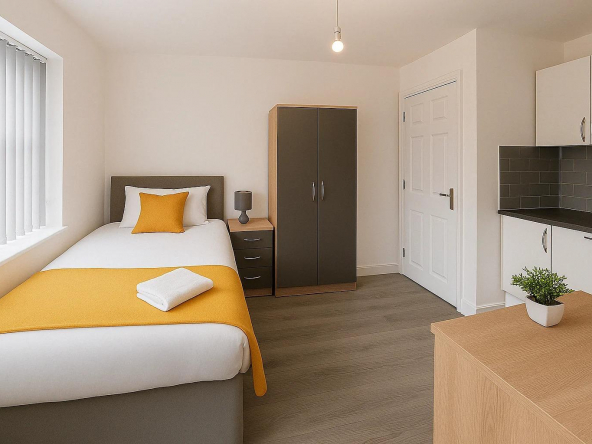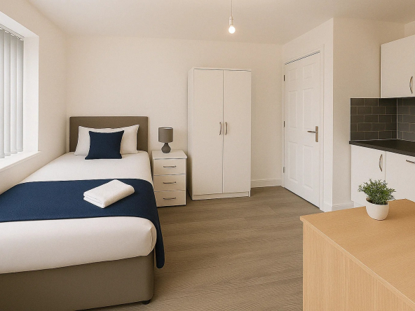 This property is solely designed to match the requirements of the accommodation provider and meet all the relevant regulatory standards. This will include further health and safety and fire regulations with fully interlinked smoke alarms, fire doors, carbon monoxide detectors and fire tested furnishings. A fully functional kitchen is provided with all white goods and cooking facilities included.